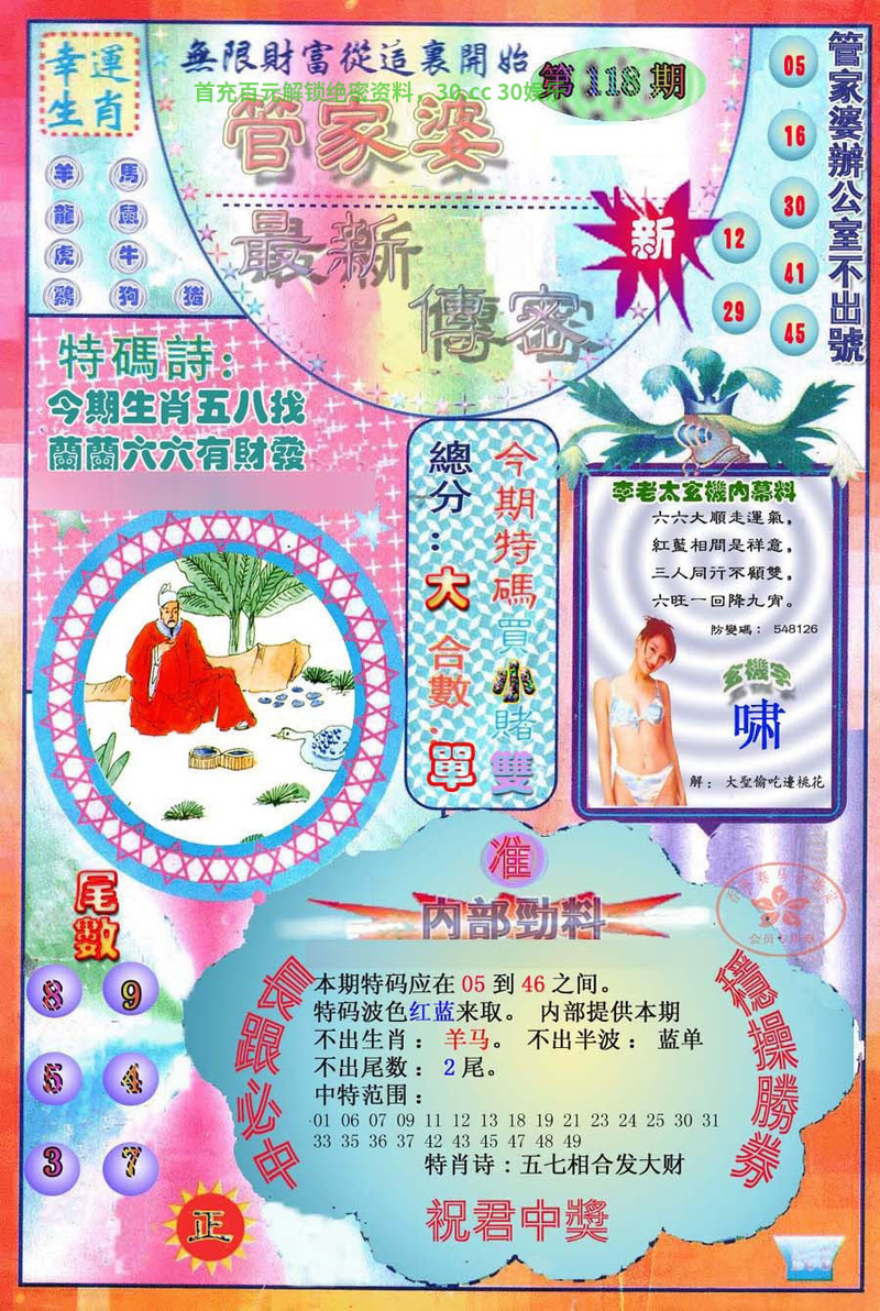 | 118期 | 兔 | 红双 | 0尾 | 开:猪31 | |
